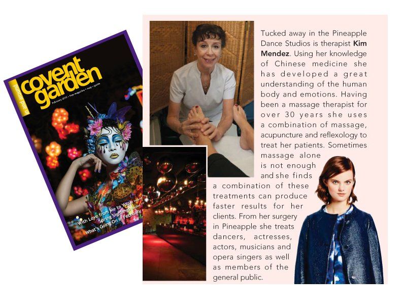 Kim started by treating professional dancers, musicians, and actors, but over the years practising and through word of mouth, her clientele has extended to include people from other professional bodies and the general public.